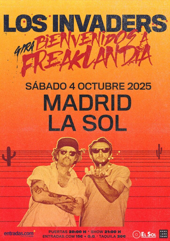 sábado 4 octubre @ 20:00 – 23:30 – 🔥 LOS «putos» INVADERS llegan a tu ciudad. Prepárate para el desfase: ponte las zapas más cañeras, reúne a tu crew y ven a romperla en serio. Jamás olvidarás el día que viste a LOS «putos» INVADERS.