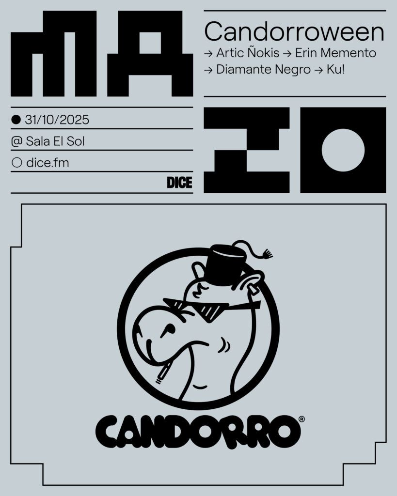 viernes 31 octubre @ 21:00 – 23:30 – Candorro celebra Candorroween en la Noche de los Muertos, con tres de los artistas de su escudería: Artic Ñokis, Diamante Negro y Erin Memento. Será el 31 de octubre en la sala El Sol en el marco del ciclo MAZO.