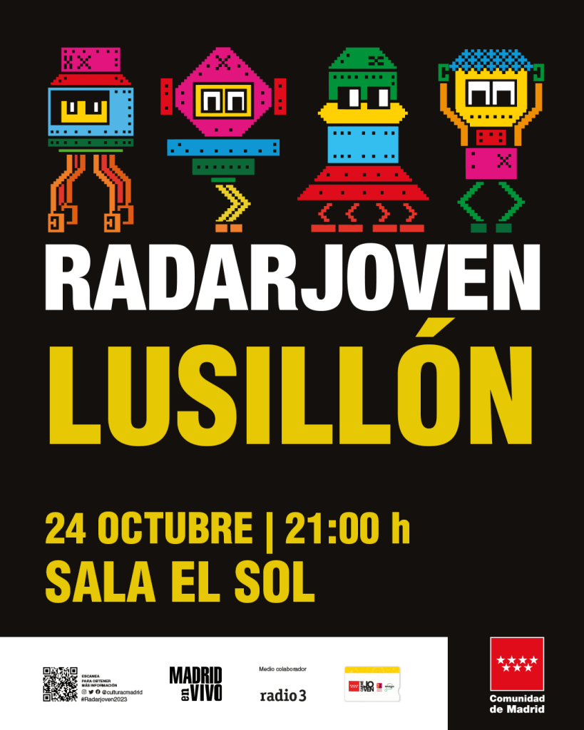 martes 24 octubre @ 21:00 – 23:30 – Vuelve a El Sol #RADARJOVEN, el ciclo de la Comunidad de Madrid y Madrid en Vivo, dedicado a los artistas emergentes y las salas.60 conciertos de bandas y artistas emergentes del martes 17 al martes 31 de octubre en 25 salas de Madrid en Vivo. Lusillon El momento musical clave de Lucía fue cuando […]