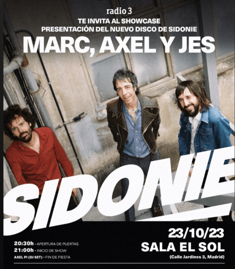 lunes 23 octubre @ 20:30 – 23:30 – Te invitamos a la fiesta de estreno y presentación del nuevo disco de Sidonie en Madrid. El grupo de Marc, Axel y Jes tiene nuevo disco y lo presentarán en una fiesta exclusiva en la sala El Sol de Madrid el próximo lunes 23 de octubre. El disco se titula “Marc, Axel y Jes”, como […]